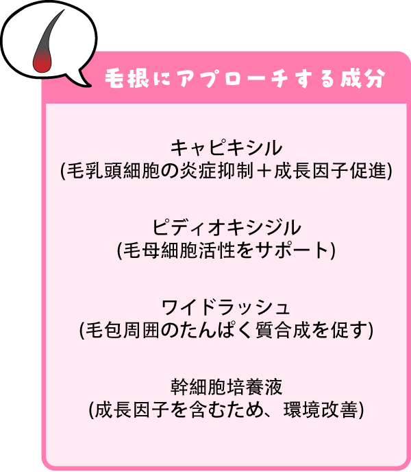 毛根にアプローチできる成分が入っているものは、太さ・長さ・抜けにくさをしっかりケアしてくれます。